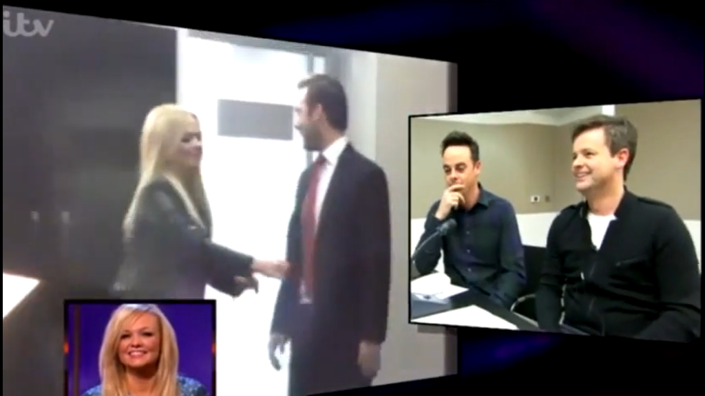 “He’s coming for an interview with a high-profile person but he doesn’t know it’s you…” Ant and Dec hide in the Wolfson Conference Suite while hapless interviewees are grilled by Emma Bunton in her executive office (the Fellow’s Room…) about her new business plans for an Emma Bunton lookalike agency…